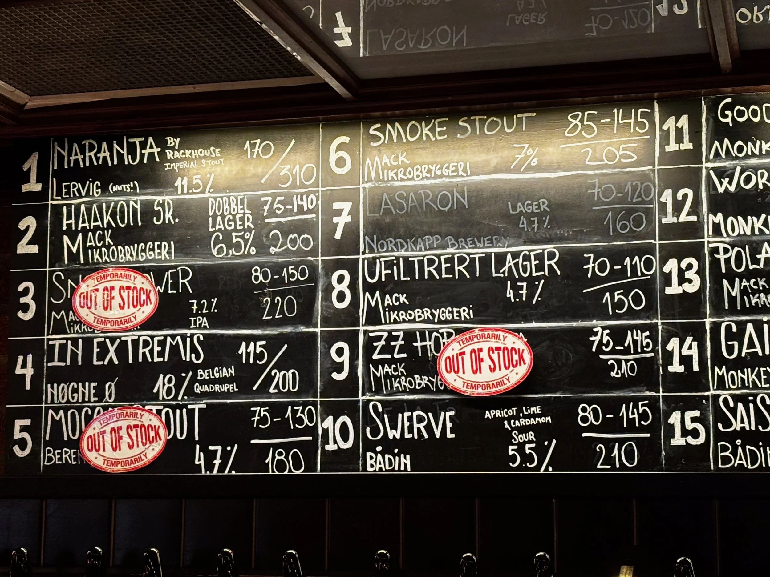 Once back on terra firma we headed to OHallen’s. This is the oldest pub in Tromso that we mentioned yesterday. Tough choice had to be made as to what beer to try as there were 72 on tap!