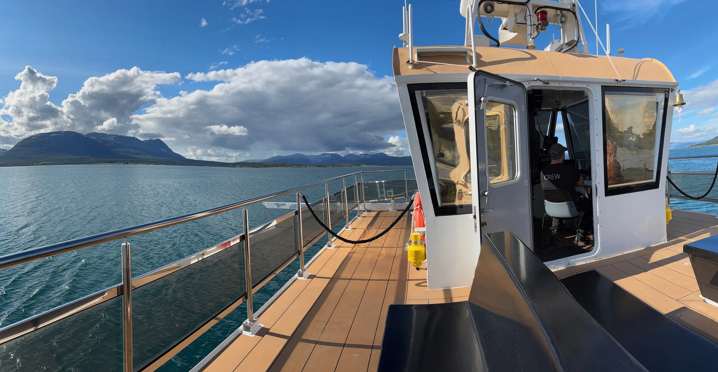 Our Fjiord cruise headed South from Tromso taking us past beautiful scenery. When we came close to islands and inlets where people lived, the boat cut its diesel engines and switched to the quieter electric ones. The only thing that could have made this more perfect was if we had been under sail. That and the 2 abnoxious fledglings on the boat behaving better. Which reminds me, the seaguls here are mahusive!!!! Big enough to carry away obnoxiuos little humans.