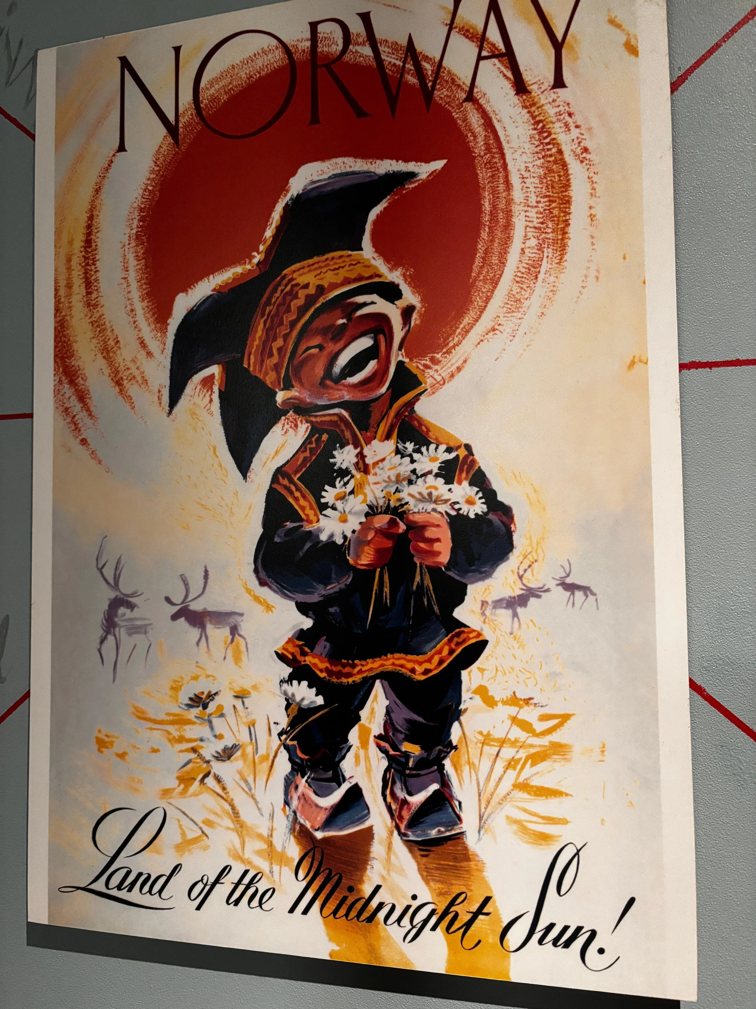 We stopped off at an area that used to be used to process cod, as in huge drying racks. A small museum here gave us a little peak into what life was like for the fishermen. The opportunity to sample cod oil and a Norwegian snack of dried cod beckoned us. The sampling of cod oil we could live without, but trying dried cod piqued our interest. It was actually quite tasty. Although Simon professes he is not ready to trade that snack in for his beloved salt and vinegar crisps.