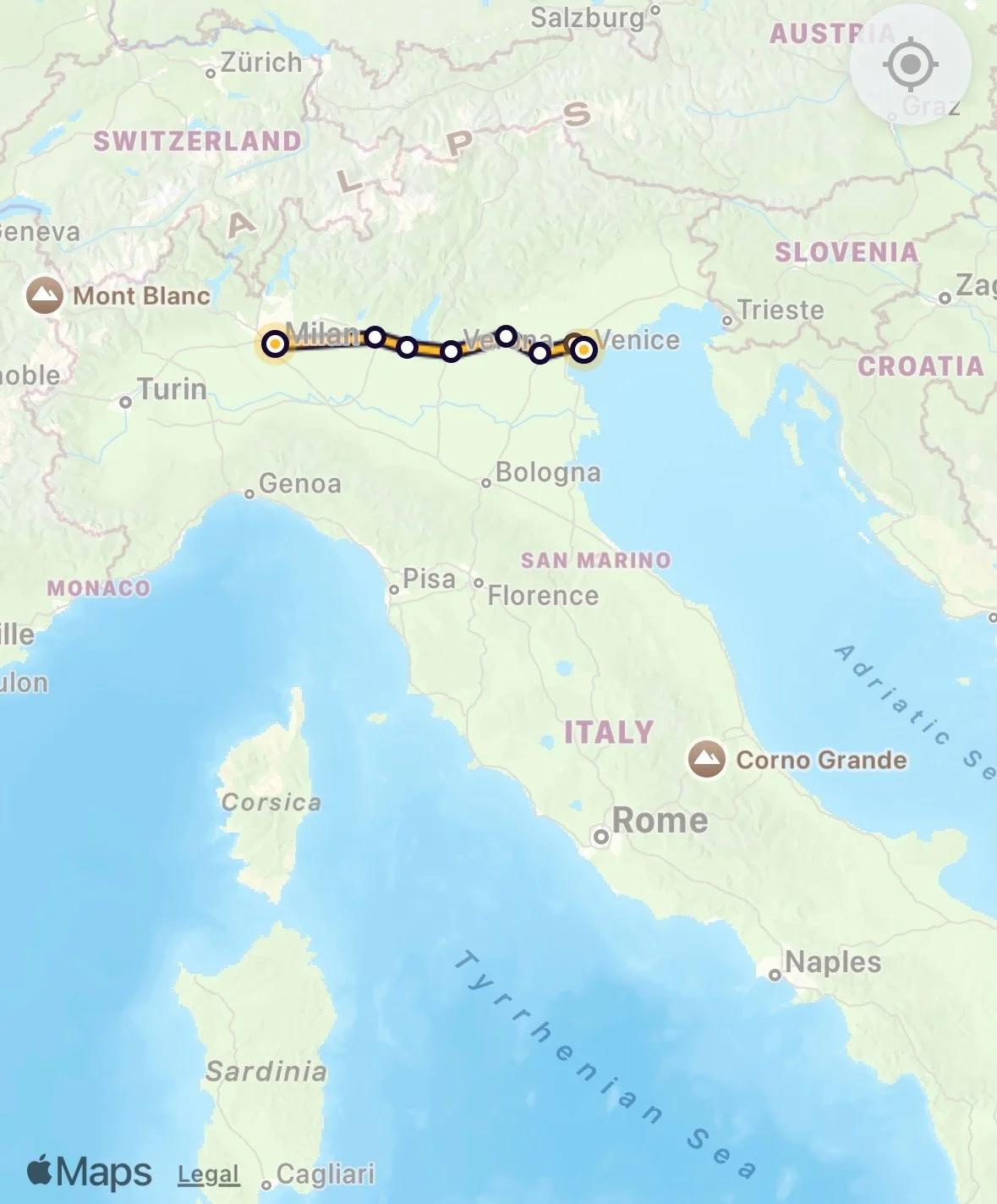 Venice to Milan Central on the FR 9724 a few hours before the strike.
