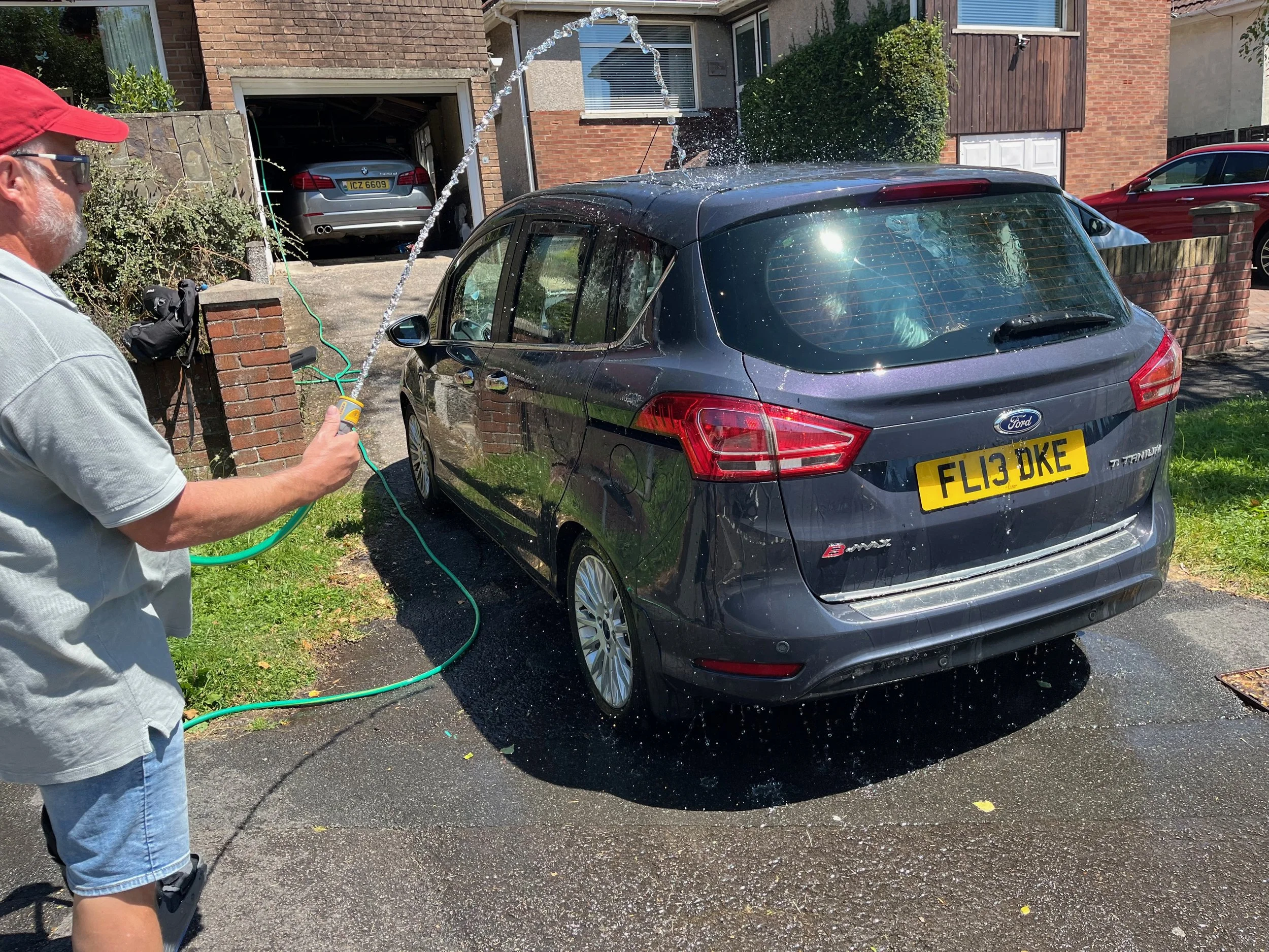 Back at base it was time to water Jean’s car to see if it would grow into a Maserati. Simon was dousing the back with the hosepipe ( what hose pipe ban??) whilst Steve was crawling all round on the inside trying to mould the panels into a more aerodynamic shape. They didn’t have much luck with that, so rather than admit defeat they decided on the story line that it appeared the leak in Jean’s car was no more.