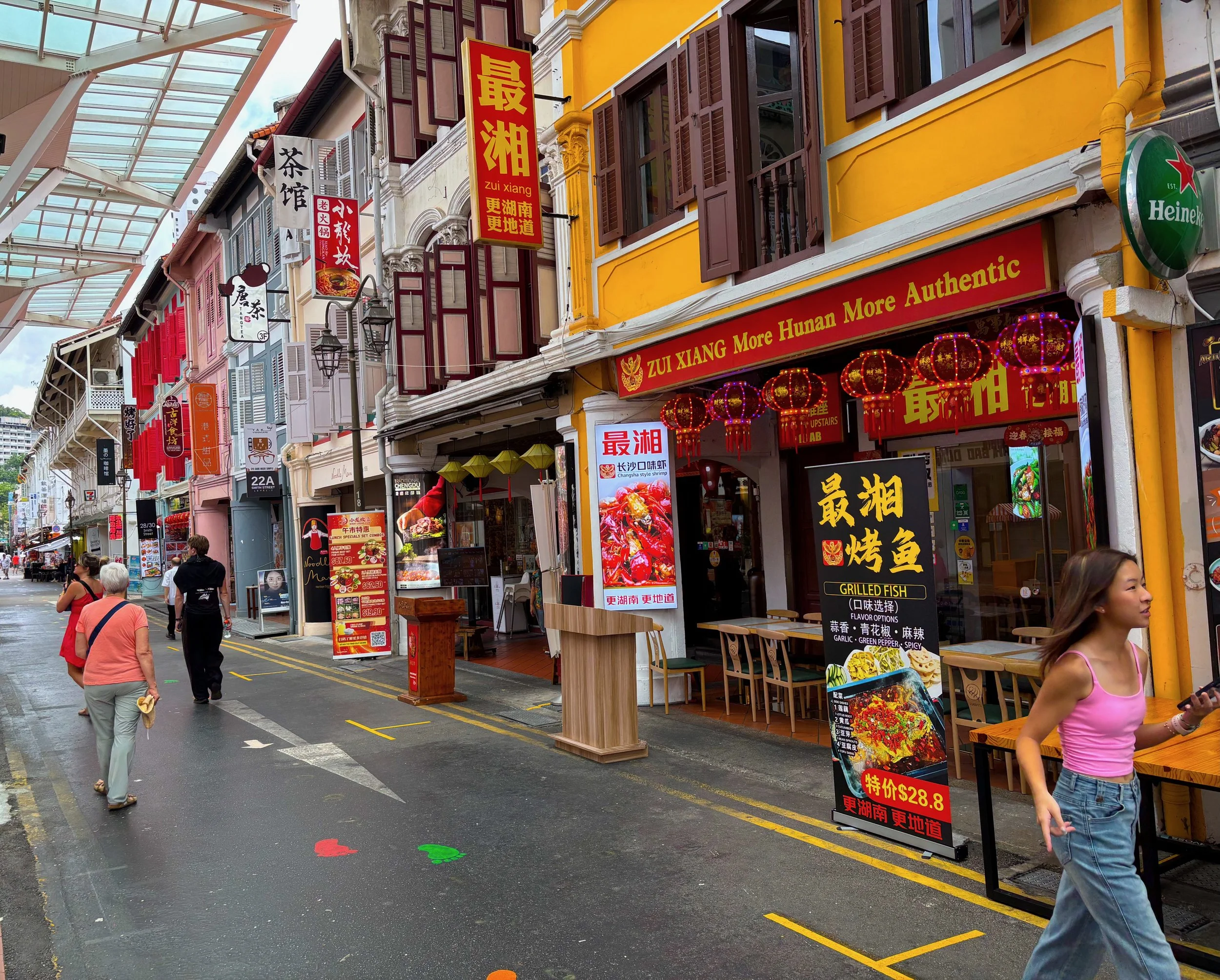 Hawkers Market Maxwell Street, Singapore. Temperatue 35°C - Humidity - Stupid.